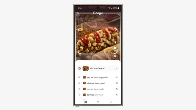 The circling gesture is just one option you can use to initiate a search — such as when you want to identify something in a video or photo. For example, if you’re watching a food video featuring a Korean corn dog, you could ask “Why are these so popular?” after circling the item.
