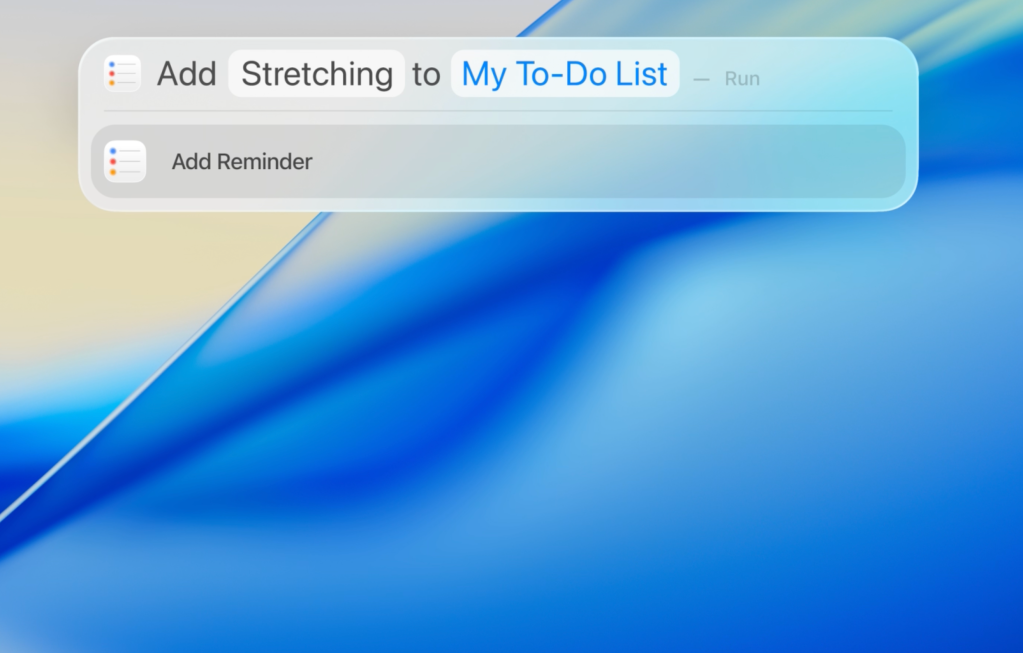 Apple also introduced quick keys: short strings of characters that take users directly to certain apps or actions. Mac users can type “SM” to send a message, or “AR” to add a new reminder. Users can also assign quick keys to custom functions in Spotlight. Developers can also make their apps discoverable in Spotlight using the App Intents API.
