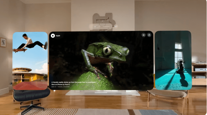 Spatial browsing on Safari can also make web browsing a more immersive experience. With certain supported articles, spatial browsing can hide distractions and reveal inline photos that “come alive as you scroll.” Developers can also add spatial browsing to their own apps.