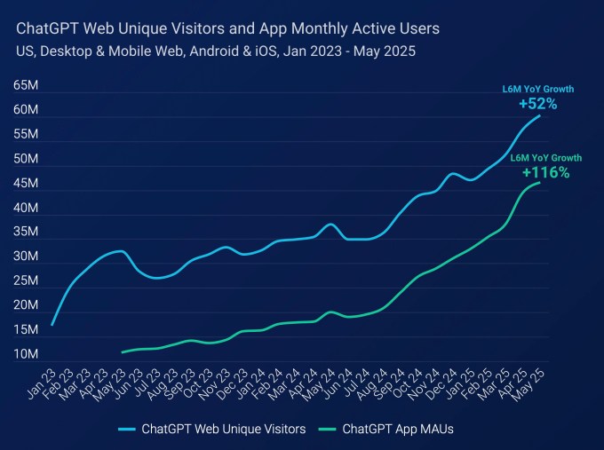 Alongside the AI referrals growth, ChatGPT’s website and app users have also seen greater adoption.