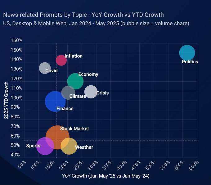 Meanwhile, news-related prompts in ChatGPT grew by 212% from January 2024 through May 2025.