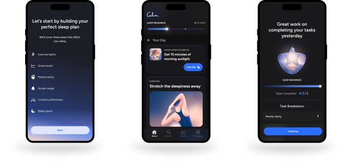 “Calm is a global leader in sleep, with more than half our users already turning to us for rest and some of the most widely used content and tools on the market,” said Jon Tien, chief product officer at Calm, in a press release. “Now with Calm Sleep, we’re introducing a product built entirely around the sleep experience, from daytime habits to nighttime routines. We’re helping people feel more empowered in their sleep journey, not just more informed about it, bringing back a sense of ease and joy to bedtime.”