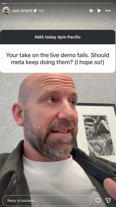 After the event, Bosworth took to his Instagram for a Q&A session about the new tech and the live demo failures.