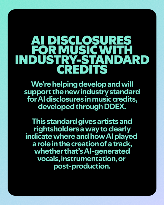 Spotify on Thursday announced a series of updates to its AI policy, designed to better indicate when AI is being used to make music, to cut down on spam, and to make it clearer that unauthorized voice clones are not permitted on its service.