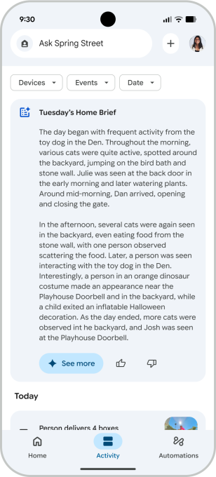 “That’s what Gemini is going to transform. This experience is all underpinned by what we call ‘semantic scene understanding,’” said Anish Kattukaran, chief product officer at Google Home and Nest, in a press briefing ahead of Wednesday’s announcement. “Because Gemini is multi-modal — and this is a hard problem, by the way…it’s not just simple object detection — but because Gemini is multi-modal, what it can do is it can actually parse through and interpret what is happening in the video,” he continued.