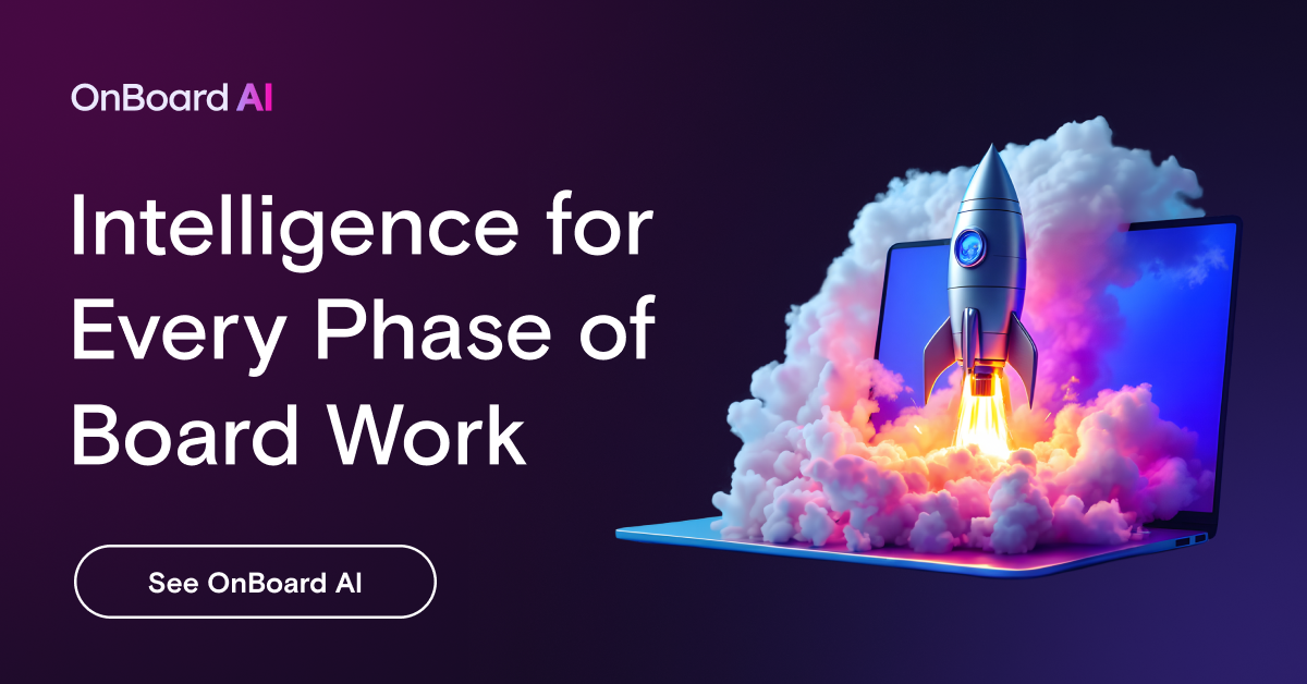 AI is already transforming boardrooms, and we’re just getting started. At OnBoard, we’re developing capabilities like predictive insights and personalized context that help directors anticipate trends, surface risks, and coach themselves in real time.